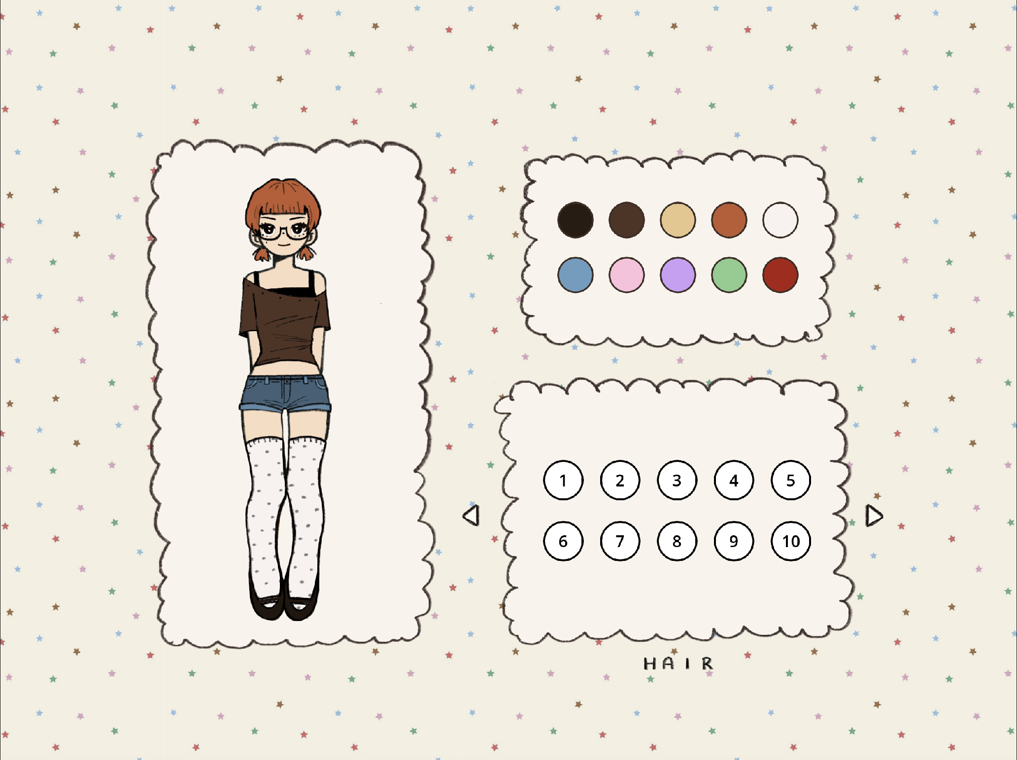 simply use the buttons on the right side of the screen to customize your character! (playable on mobile as well) you are able to use the color changing buttons on every attribute except the eyebrows, extras, & eyes :( however there are still many possible combinations without those options. i can’t wait to see where people’s ideas take them with this !・。 (pls post your characters in the comments ^_^)